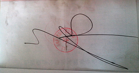 第二辆车在高平高速服务区一间不知名的房间里交了700元后,拿到了所谓的“通行证”,这张单据一共三联,第一联空白,被这些开票者留存,第二和第三联盖有“太原市某某信息部”的印章,开票人处盖有“长治小侯”的私章,而且在这些票据背后有一个龙飞凤舞的“常”字手写体,司机说这是为了防伪。在高平服务区内还停着数辆运输炉渣的货车,司机们正按照“惯例”在这里“办理手续”,行至丹河煤检站,我们佯装票据丢失,尽管磨破了嘴,那些工作人员既不检查车辆也不放行,最后司机拿出在高平服务区开具的“通行证”,车辆得以顺利通过。