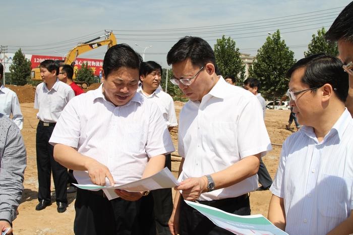 8月23日上午,市委常委、纪委书记郭锝昌带领市直相关部门负责人,就中心城区批发市场外迁工作进行专题调研。图为郭锝昌在新郑市郑州华南城工程项目建设现场查看项目进展情况。