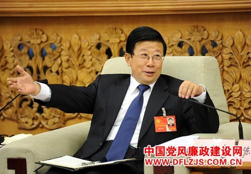 11月9日,中国共产党第十八次全国代表大会贵州省代表团讨论对中外记者开放。图为赵克志主持会议。新华网 陈竞超 摄