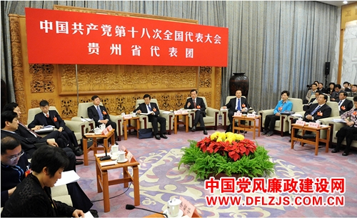 11月9日,中国共产党第十八次全国代表大会贵州省代表团讨论对中外记者开放。图为会议现场。新华网 陈竞超 摄