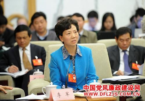 11月9日,中国共产党第十八次全国代表大会贵州省代表团讨论对中外记者开放。图为谌贻琴代表发言。新华网 陈竞超 摄