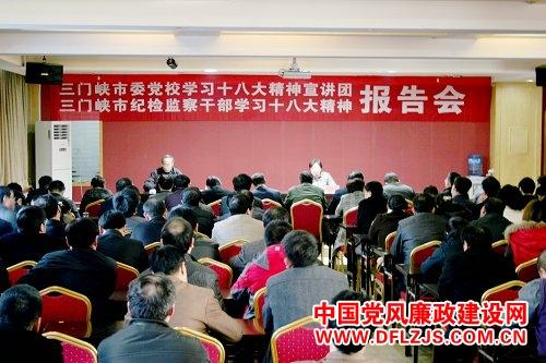 河南省三门峡市纪检干部学习十八大精神专场报告会11月26日在三门峡市委党校隆重举行。三门峡市纪检委全体人员、2012年秋季领导干部研修班学员和党校全体教职工参加了报告会。