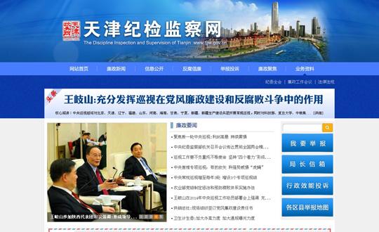 3月18日,升级改版的天津纪检监察网(http://www.tjjw.gov.cn)正式开通。作为天津市纪委市监察局唯一的政务门户网站,网站设置廉政新闻、信息公开、反腐倡廉、举报投诉、廉政聚焦和业务资料6个一级栏目、26个二级栏目,突出“信息发布、举报投诉、资料查询”三大功能,将在“及时发布重要新闻,权威解读决策部署,全面展示工作成果,接受网络信访举报,提供专业数据服务,传递反腐正能量”方面发挥积极作用,成为全市反腐倡廉网络宣传和舆论引导的“主阵地”、与群众沟通的“新桥梁”、推进开门反腐的“新窗口”。