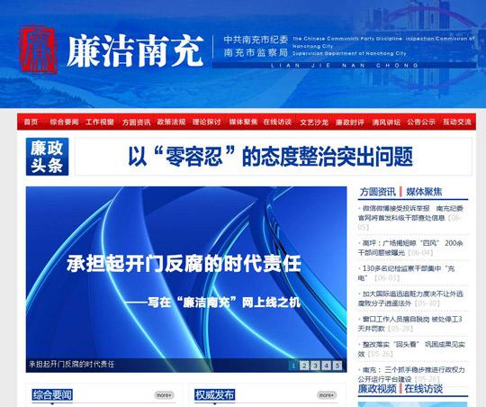 南充市纪委监察局官方门户网站2013年6月正式推出,今年5月改版,重点突出了媒体聚焦、曝光台、权威发布等栏目内容,及时公布网友关心关注的热点问题。今后,对科级干部的查处相关信息将在“廉洁南充”网站权威发布栏目首发,对违纪违规干部形成震慑。