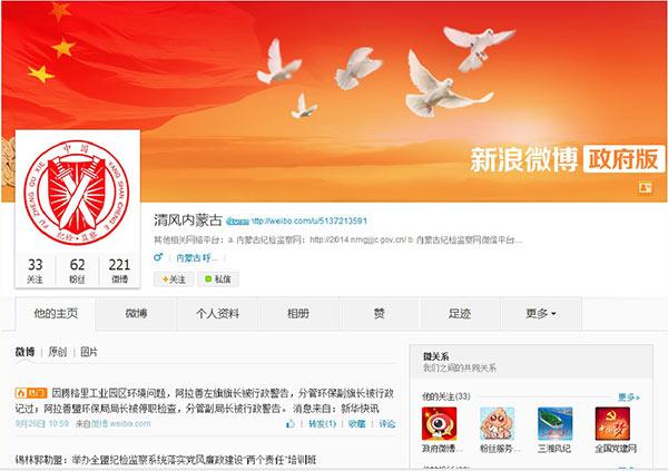 内蒙古自治区纪委官方微博截图