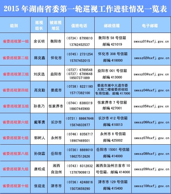 湖南:公布今年首轮巡视地区和值班电话电子邮箱