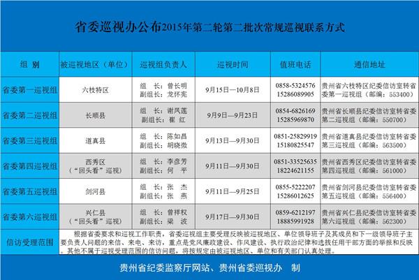 贵州:公布2015年第二轮第二批次巡视联系方式