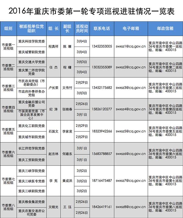 重庆:今年第一轮专项巡视全部进驻 公布值班电话邮箱