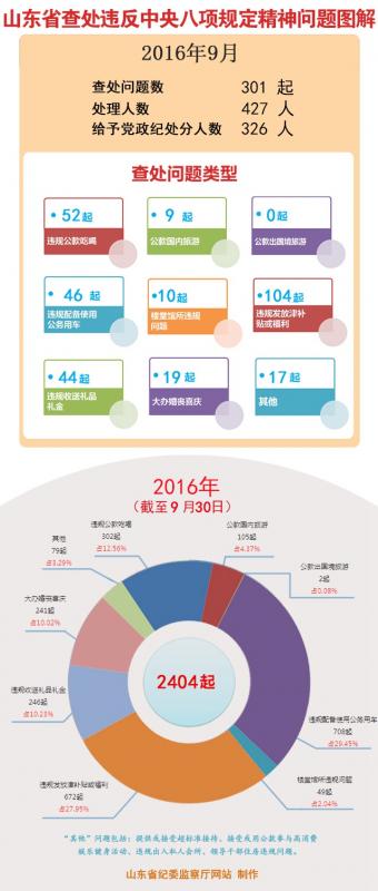 山东:前三季度查处违反八项规定精神问题2404起