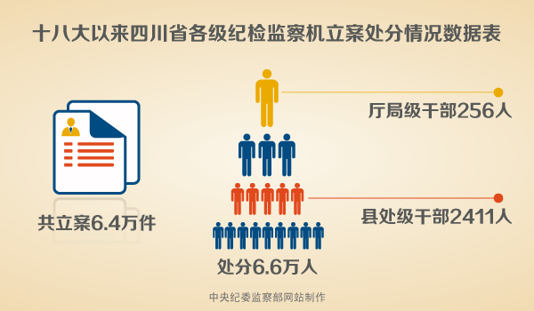 同时,四川省纪委加大对基层纪委的指导力度,完善交叉办案、驻点办案、协作办案等工作模式,对重点问题实行挂牌督办,必要时提级办理。党的十八大以来,全省纪检监察机关共立案6.4万件,处分6.6万人,其中厅局级干部256人、县处级干部2411人,进一步强化了“不敢腐”的震慑效应。(四川省纪委 | 中央纪委监察部网站 张祎鑫)