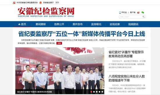 重新建设的“安徽纪检监察网”突出要闻播报、审查信息发布、监督曝光、巡视巡察等栏目,强化纪检监察工作特点,及时发布中央纪委和安徽省纪委重大部署、重要通报,重点宣传全省纪检监察系统监督执纪问责的举措、经验和成效。