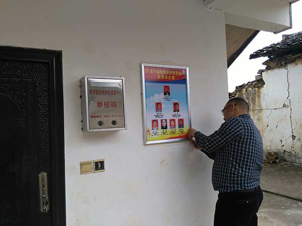 悬挂扶贫资金监督举报箱及扶贫资金监督机构公示牌