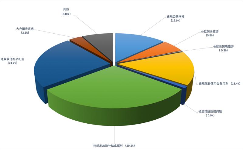 今年1至8月,全省查处的违反中央八项规定精神问题中,主要集中在违规发放津补贴或福利、违规收送礼品礼金、违规配备使用公务用车等方面,分别查处392起、325起、206起;分别占查处问题总数的29.2%、24.2%、15.4%。(福建省纪委)