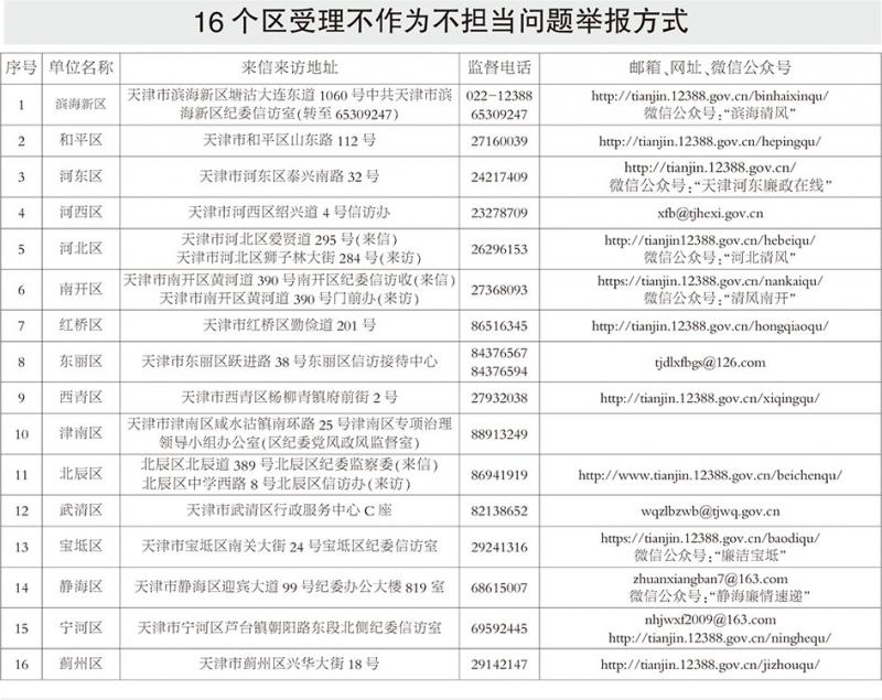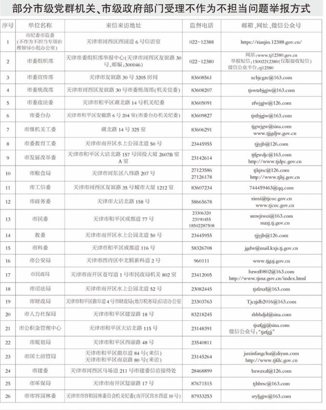 天津开展不作为不担当问题专项治理 有关单位受理不作为不担当问题举报方式公布