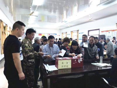 4月12日上午,诸暨市农村基层作风交叉巡察第二十四组在同山镇西源村召开巡查工作动员会,并对村两委班子及成员进行民主测评,图为西源村党员群众正在投放民主测评表。