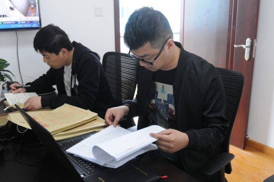 温岭市纪委市监委案件审理室青年干部正在对各镇(街道)报送的案卷证据材料及程序材料进行认真审核。