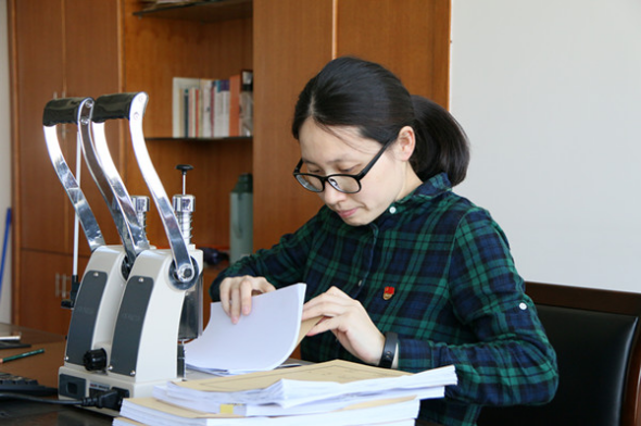 事实清楚、定性准确、程序合规.....逐梦岂能天马行空,严谨认真更是青春本色。衢州市衢江区纪委监委第三纪检监察室青年干部正在给已办结的案卷资料打眼装订归档。