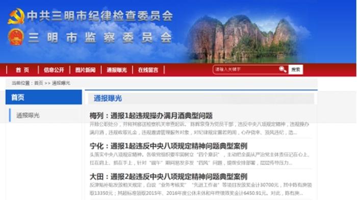 三明市纪委监委网站通报一批违反中央八项规定精神典型案例
