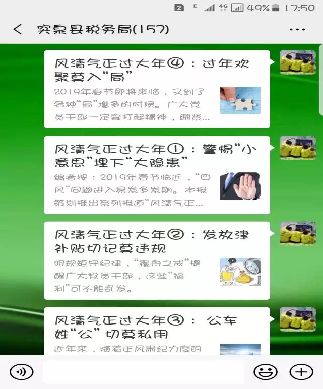 督促各党委(党组)进一步提高政治站位,发挥好“头雁效应”,认真履行全面从严治党主体责任,通过开展全覆盖、无死角的谈心谈话、警示教育活动和加强对《中国共产党纪律处分条例》等党纪党规的学习贯彻,引导广大党员干部和公职人员不断强化纪律意识。同时,在突泉县党风廉政建设工作群转发《风清气正过大年》系列文章和违反中央八项规定精神典型案例,督促党员干部勿踩纪律“红线”,以钉钉子精神持之以恒抓好作风建设。