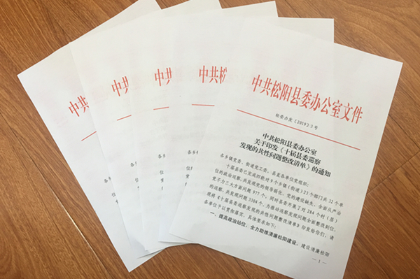 松阳县委办公室印发《十届县委巡察发现的共性问题整改清单》