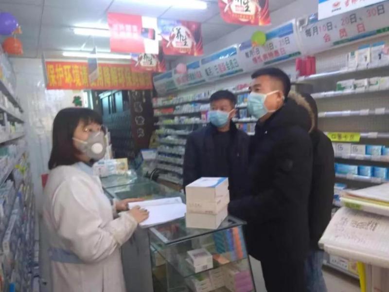 ▲桦甸市纪委监委驻市场监管局纪检监察组组成工作组,深入11家药店对医用口罩、消毒用品的市场供应和价格等情况进行监督检查。图为工作组检查防护用品库存情况。