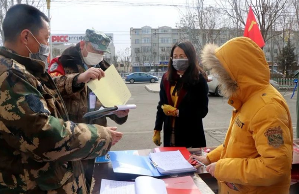 “你好,我是镇纪委的党员,来协助社区疫情信息排查,请您配合一下。”大年初三,在察素齐镇中山路西社区某居民小区,佩戴党徽、袖标、口罩,手拿消毒液的镇纪委干部白英桃在社区网格员的指领下敲开居民房自报家门,给业主宣传疫情群防群治政策,了解家庭成员情况,询问是否从湖北等重点地区返乡,细致填写信息登记表。