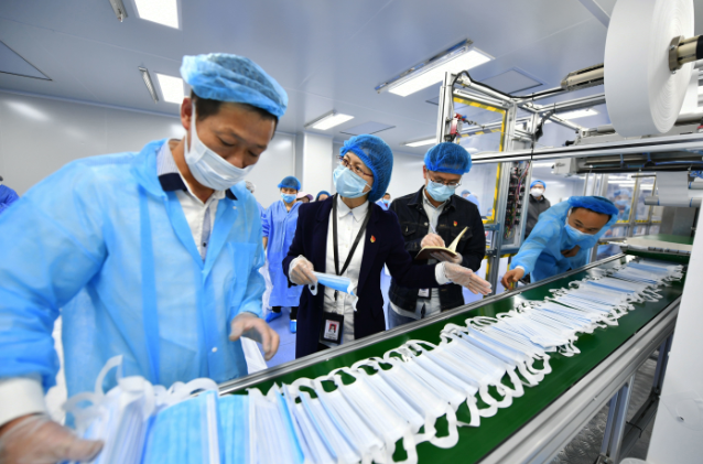 连日来,福建省泉州市洛江区纪委监委充分发挥监督职能,实行“联点包片”,由该委班子成员带队,5个工作组分别下沉企业一线,着力开展打通企业用工难、疫情防控难、交通物流难、供应链协同配套难、市场拓展难等“五难”操作链专项督查行动,在监督中服务,在服务中监督,有效助推企业复工复产。图为2020年4月1日,洛江区纪委监委干部在泉州培新机械制造有限公司车间,向工人了解相关政策落实情况。(林升 摄影报道)