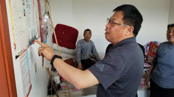 在幸福院周世荣挨家挨户询问了贫困户身体状况、产业发展、合理诉求等方面情况。