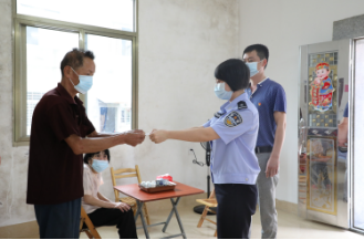 庄敬民(右一)一行送达新办的身份证