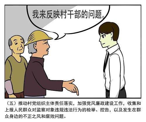 这份履职清单是由十张漫画构成,漫画下方是履职清单的具体内容,清单篇幅不长,但字字句句都为“干货”,是给村级监察联络员量身打造的履职宝典。对村贯彻落实党的基本路线、方针、政策和上级决策部署情况进行督查;对村民主决策、村“三务”公开进行监督检查;推动村党组织主体责任落实;加强党风廉政建设工作等各个方面的重点均有体现,并且对这些内容又进行了细化明确,各村村级监察联络员的日常工作,只需对单落实即可,更加方便村级监察联络员做好各项监督工作。