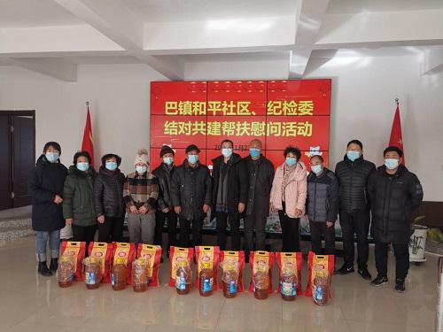 磴口县纪委监委党员干部为结对帮扶贫困户送去大米、食用油等生活必需品,同时为他们送上新春的问候和祝福。