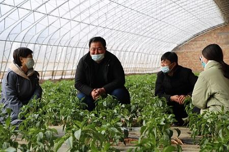 纪检监察干部和兴隆乡李堡村党支部书记了解设施蔬菜大棚种植情况