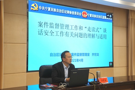 自治区纪委监委案件监督管理室副主任齐世龙作《案件监督管理工作和“走读式”谈话安全工作有关问题的理解与适用》专题辅导