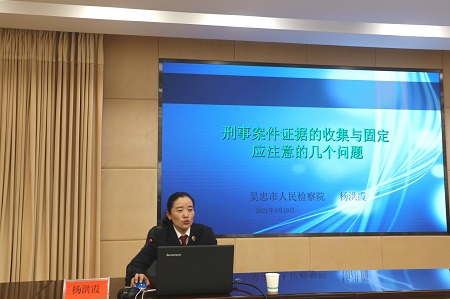 吴忠市检察院第一检察部主任杨洪霞作《刑事案件证据的收集与固定应注意的几个问题》专题辅导