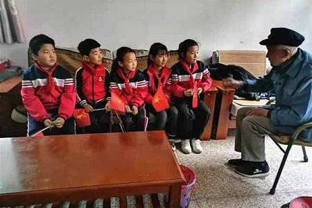 衢州市衢江区廿里镇中心小学组织学生到红军老战士家中听红军故事