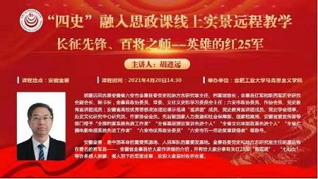 据统计,到5月14日止,金寨县委史志室已派员外出进行集中宣讲43场(次),直接听众达6000余人(次)。尤其值得一提的是,金寨县委史志室与合肥工业大学马克思主义学院积极合作,共同探索“四史”教育融入“思政教学”的新模式、新途径、新方法。4月20日,胡遵远在金寨县红二十五军军政机构旧址进行现场教学,然后通过网络将现场教学实景直接传送到合工大马克思主义学院的10个教室,让远在200里之外的1000多名师生“足不出户”就能看到、听到现场教学的一切真实情况,产生一种身临其境的感觉,受到一场深刻的思想政治教育。