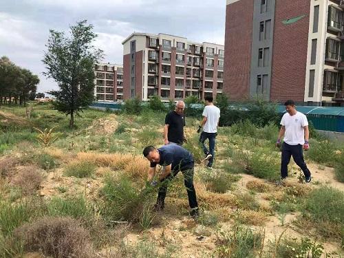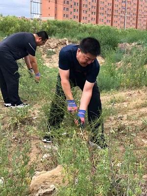 为防止蒿草再次复生,清除过敏源,除草现场,同志们戴上手套认真查找、仔细分辨,有的用手拔,有的用工具铲,充分发挥不怕苦、不怕累、不怕脏的精神。