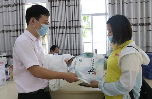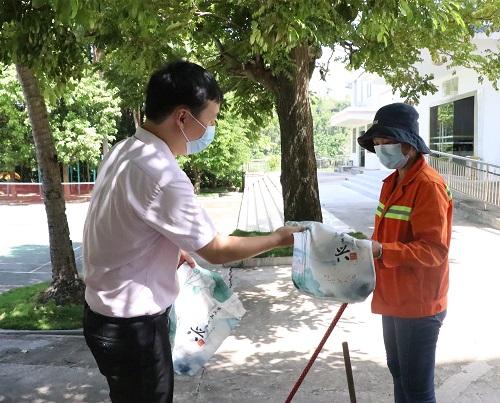 图为五指山市毛阳镇纪委将印有“清廉自贸港”宣传图文的环保袋分发给当地群众