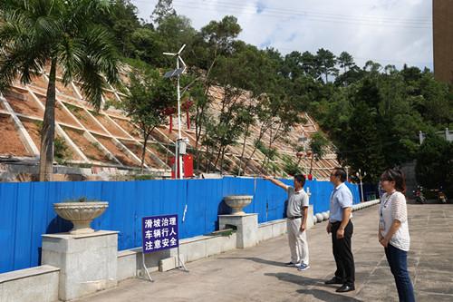 东兰县纪检监察干部督查韦拔群纪念馆后面山体滑坡治理情况(韦礼雄 摄)