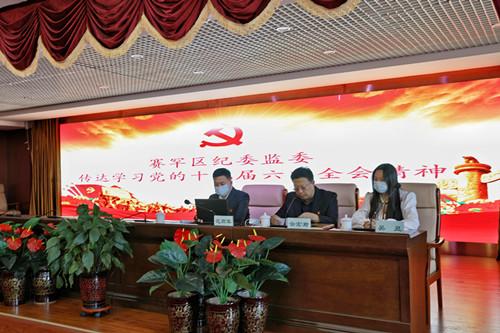 【清廉网】(石俊峰)11月17日下午,赛罕区纪委、监委召开会议,认真传达学习党的十九届六中全会精神,研究部署具体贯彻措施。区纪委监委领导班子成员、委机关、各部室(中心)、各派驻纪检监察组、各镇街道纪(工)委全体干部参会。