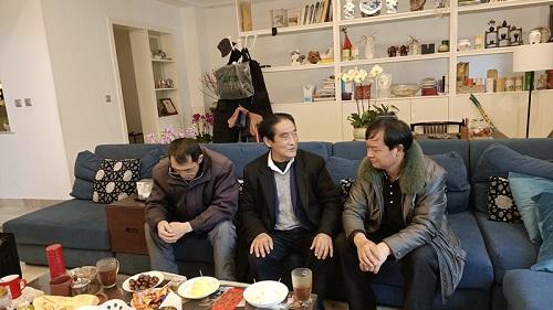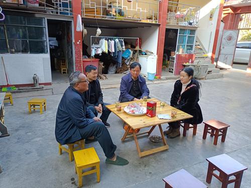 党组成员、政治处主任(右一)与退休干部拉话家常