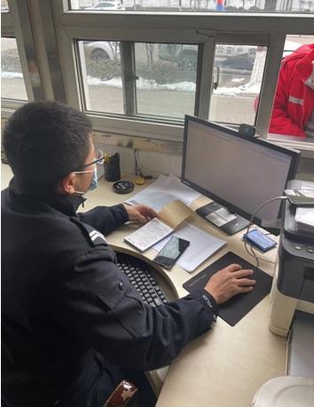 执法站在岗人员及内勤利用集成指挥平台及警务通手机对过往”两客一危”逐车进行登记、检查,重点检查客运车辆的行驶证、驾驶证、载客人数、行车轨迹等情况,进行检查登记。