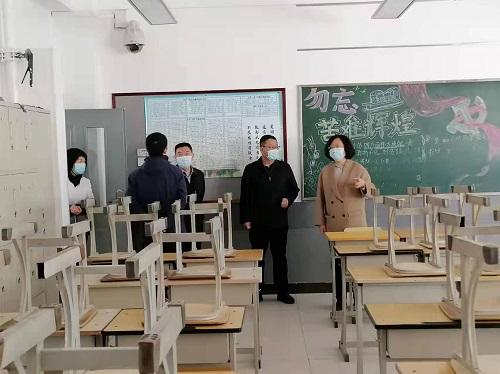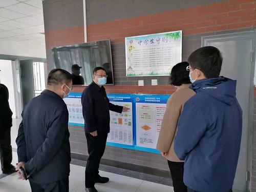在第二中学校长的介绍和带领下,闫义书记一行先后查看了学校出入通道、测温区、防疫物资储备情况等,详细了解了学校复课基本情况、开学工作方案、应急预案及校园消杀等各项具体工作,并就督导出现的问题提出具体指导意见。