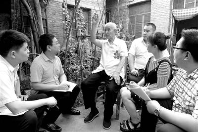图为该市桥西区纪检监察干部在听老党员陈清发讲述革命故事。邱洪生 摄