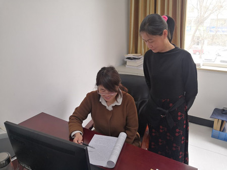 永清县后奕镇纪委张梅(右一)在县纪委监委党风政风监督室跟班学习,这是她正在与同事就监督执纪过程中遇到的疑难复杂问题进行交流。