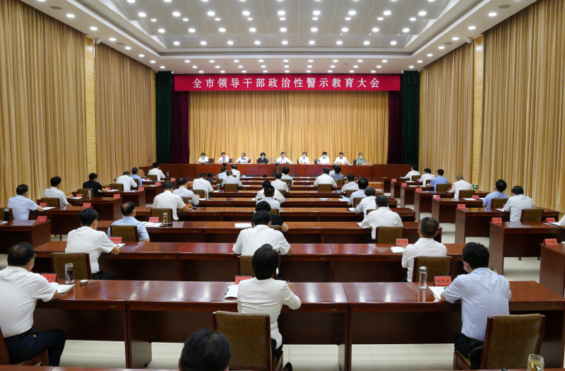 图为全市领导干部政治性警示教育大会会议现场。
