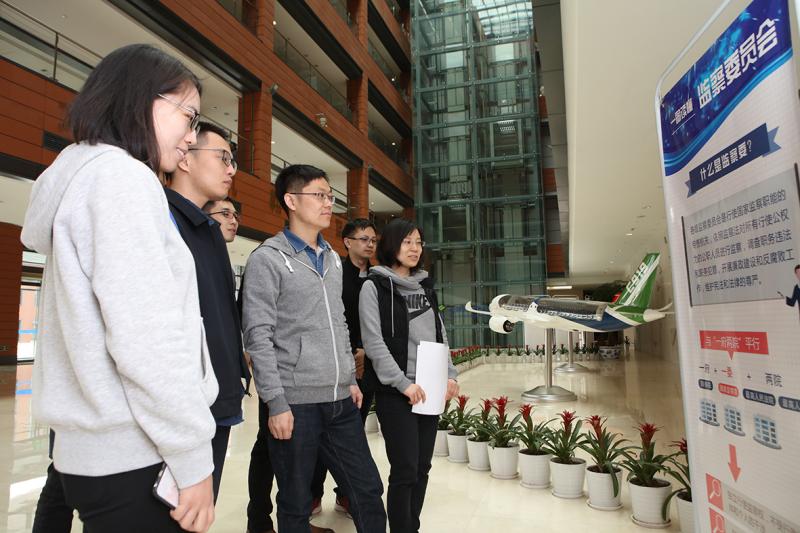 ▲学习宣传《监察法》活动进企业,走进中国商飞北京民用飞机技术研究中心