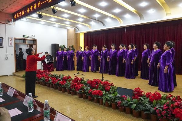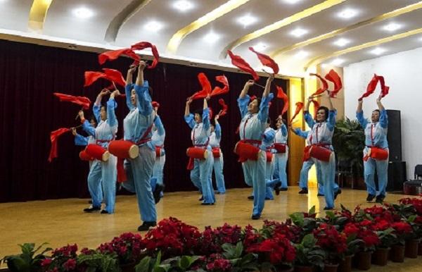 社区活动中心座无虚席、秩序井然,欢歌热舞,鼓乐声喧,充满祥和喜庆气氛。