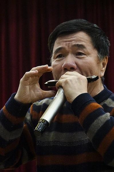 李勇表演口琴独奏《军歌联奏》。