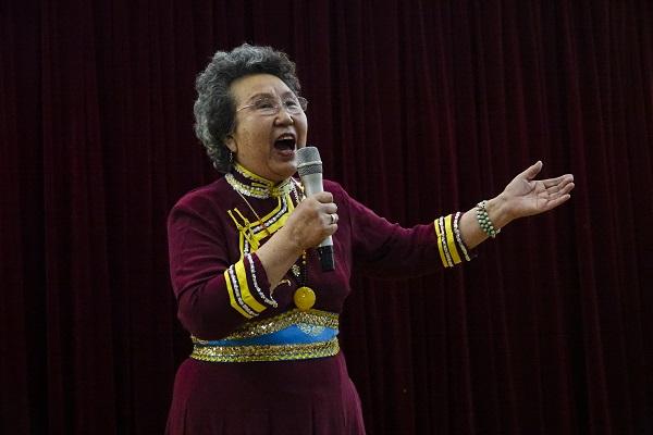 蒙古族歌唱家、年近八旬的莎如拉演唱《美丽的诺恩吉雅》,声音雄浑高亢,感情真挚充沛,充分展示了一个老艺家的深厚功力和奕奕风采。